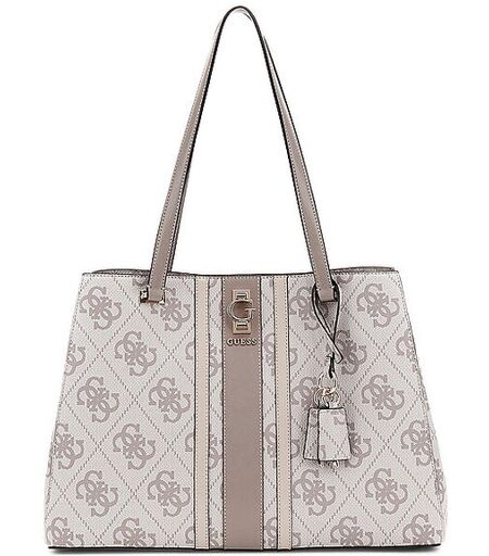 Damen Henkeltasche aus Lederimitat mit 4G-Allover-Logoprint Zweigeteiltes Hauptfach mit Magnetverschluss Ein mittiges Reißverschlussfach Ein Reißverschlussfach auf der Rückseite Zwei Tragegriffe Abnehmbarer Anhänger Maße: Ca: 38x27x12 cm Farbbezeichnung: Dark Taupe Logo Material: 100% Polyurethan ...