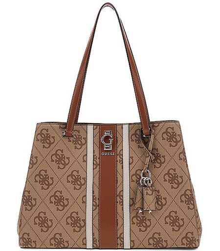 Damen Henkeltasche aus Lederimitat mit 4G-Allover-Logoprint Zweigeteiltes Hauptfach mit Magnetverschluss Ein mittiges Reißverschlussfach Ein Reißverschlussfach auf der Rückseite Zwei Tragegriffe Abnehmbarer Anhänger Maße: Ca:38x27x12 cm Farbbezeichnung: Latte Logo Material: 100% Polyurethan ...