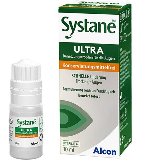 Typische Beschwerden sind Fremdkörpergefühl im Auge, Augenbrennen, tränende, müde oder schmerzende Augen, Sehstörungen, Rötung der Bindehaut sowie geschwollene oder verklebte Augenlider. Aufgrund ihrer Kontaktlinsenverträglichkeit ist die Anwendung von Systane Ultra ohne Konservierungsstoffe vor, während und nach dem Tragen der Kontaktlinsen möglich. Die Dosierung ist dank der handlichen Drop-Tainer®-Flasche ganz einfach.