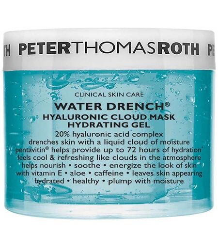 Pflege trockene, dehydrierte Haut mit einer flüssigen Feuchtigkeitswolke. Die Water Drench® Hyaluronic Cloud Mask von Peter Thomas Roth kombiniert feuchtigkeitsspendende und feuchtigkeitsbindende Wirkstoffe wie einen 20%igen Hyaluronsäure-Komplex und Pentavitin®, um deinen Teint bis zu 72 Stunden lang mit Feuchtigkeit zu versorgen, selbst nach dem Abspülen.Das feuchtigkeitsspendende Gel enthält eine Infusion aus Vitamin E, Aloe-Blattsaft und Koffein, um müde aussehende Haut zu beleben und sie wunderbar geschmeidig und aufgepolstert zu machen. ...