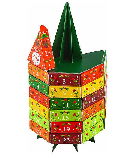 Tee Adventskalender in völlig neuartigem Design. Lässt sich als Tannenbaum aufstellen. Mit 24 +1 feinen Bio Teemischungen in Pyramidenbeuteln. Zutaten: 2x Ceylon Schwarzer Tee, BIO: Schwarzer Cylon Tee (100%)*. (Ziehzeit: 4-5 Minuten). 2x Kurkuma, Ingwer & Zitronengras - Gewürztee, BIO: Ingwer (30%)*, Kurkuma (30%)*, Zitronengras (14%)*, Süßholz (7%)* **, Nelken (7%)*, Schwarzer Pfeffer (5%)*, Zitronenschale (4%)*, Kreuzkümmelsamen (2%)*, Kardamom (1%)*. (Ziehzeit: 3-4 Minuten). 2x Sencha - Grüner Tee, BIO: Sencha Tee (100%)*. (Ziehzeit: 2-3 Minuten). 2x Apfel Zimt - Früchtetee aromatisiert, BIO: Hibiskus (47%)*, Hagebutte (36%)*, Apfel (5%)*, Zimt (5%)*, Pfefferminz (2%)*, natürliches Erdbeer Aroma (2%), natürliches Kirsch Aroma (1,5%), natürliches Himbeer Aroma (1,5%). (Ziehzeit: 3-5 Minuten). 2x Garcinia Cranberry - Früchtetee aromatisiert, BIO: Hibiskus (33%)*, Hagebutte (26%)*, Zitronengras (25,5%)*, Ingwer (6%)*, Garcinia Cambogia Frucht (4%)*, natürliches Cranberry Aroma (3%), natürliches Lychee Aroma (1,5%), Cranberry (1%)*. (Ziehzeit: 3-5 Minuten). 2x Ceylon Zimt - Gewürztee, BIO: Zimt (92%)*, Ingwer (6%)*, Kardamom (2%)*. (Ziehzeit: 3-5 Minuten). 2x Mate, Kakao & Kokosnuss - Matetee, BIO: Yerba Mate (50%)*, Kakao (26%)*, Ingwer (12%)*, geröstete Kokosnuss (10%)*, Süßholz (2%)* **. (Ziehzeit: 3-5 Minuten). 2x Zitronengras, Zitrus & Ingwer - Kräutertee aromatisiert, BIO: Zitronengras (47%)*, Orangenschalen (24%)*, Ingwer (24%)*, Limettenöl (2,5%)*, Mandarinenöl (2,5%)*. (Ziehzeit: 3-4 Minuten). 2x Kakao, Zimt & Ingwer - Gewürztee, BIO: Zimt (45%)*, Kakao (32%)*, Fenchel (15%)*, Ingwer (8%)*. (Ziehzeit: 4-5 Minuten). 2x Holiday Boost - Früchtetee aromatisiert, BIO: Hagebutte (34%)*, Hibiskus (22%)*, Zimt (12%)*, Pfefferminzblätter (11%)*, Apfel (11%)*, Süßholz (4%)* **, natürliches Mango Aroma (2,5%), natürliches Zimt Aroma (1,5%), natürliches Vanille Aroma (1%,) Rosenblütenblätter (1%)*. (Ziehzeit: 3-5 Minuten). 2x Winter Balance - Kräutertee aromatisiert, BIO: Pfefferminzblätter (30%)*, Spearmint (Grüne Minze) (18%)*, Bockshornklee (12%)*, Zimt (10%)*, Zitronenschale (9%)*, Fenchel (7%)*, Kurkuma (5%)*, Holunderblüte (4,5%)*, natürliches Mango Aroma (2,5%), natürliches Ananas Aroma (2%). (Ziehzeit: 2-3 Minuten). 2x Winter Warmer - Rooibostee aromatisiert, BIO: Rooibos (60%)*, Kakao (17%)*, Ingwer (15%)*, natürliches Kakao Aroma (5%), Muskatblüte (2%)*, Sternanis (1%)*. (Ziehzeit: 3-5 Minuten). 1x Tropical Lemongrass - Kräutertee / Früchtetee aromatisiert, BIO: Zitronengras (30%)*, Pfefferminzblätter (20%)*, Hibiskus (20%)*, Hagebutte (11%)*, Apfel (10%)*, Kamille (4%)*, natürliches Mango Aroma (2,5%), natürliches Pfirsich Aroma (1,5%), natürliches Passionsfrucht Aroma (1%). (Ziehzeit: 2-3 Minuten). (* = aus kontrolliert biologischem Anbau, ** = enthält Süßholz – bei hohem Blutdruck sollte ein übermäßiger Verzehr vermieden werden) Hinweis: Kräuter- und Früchtetees mit sprudelnd kochendem Wasser... ...