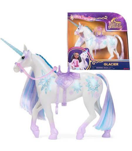 UCA Fashion Unicorn Sortiment (G+C) Fix2 Schwer zu sagen, wer auf Unicorn Island und in der magischen Reitschule Unicorn Academy die Hauptrolle spielt. Sind es Sophia und ihre Mitschülerinnen und Mitschüler oder doch eher die Einhörner, die ihnen die Farb-Feen, je nach Persönlichkeit zuordnen? In der Spielzeuglinie von Spin Master sind Glacier und Cinder im Sortiment sowie einzeln die fünf beliebtesten Einhörner aus der Serie (Wildstar, River, Leaf, Glacier und Cinder) als 28 cm große, mit viel Liebe zum Detail versehene Figuren erhältlich. Die magischen Wesen sehen nicht nur genau so wunderschön aus wie in der Serie, dank einem beweglichen Kopf sowie abnehmbarem Sattel und Zaumzeug eignen sie sich super für Rollenspiele und Abenteuer zuhause. Die Figuren sind in toll schimmernden Farben gestaltet und besitzen ein individuelles Muster, welches auf die jeweilige Magie des Einhorns hindeutet. Die zweifarbige seidige Mähne und der Schweif können kunstvoll geflochten und frisiert werden - dazu ist eine Bürste enthalten. Die Hörner der aufregenden Tiere schimmern geradezu magisch, mit ihrem zauberhaften Look entführen sie ihre Fans in die fantastischen Geschichten von Unicorn Island. Damit das Rollenspiel realistisch wird, müssen die Einhörner vor dem Ausreiten mit ihrem glitzernden Zubehör aufgezäumt und gesattelt werden. Dann können sich ihre seelenverwandten Reiterinnen als 24 cm große Ankleidepuppe (separat erhältlich) in den Sattel schwingen und gemeinsam ins nächste Abenteuer reiten. Neben den großen Einhörnern gibt es von Spin Master viele weitere Spielsachen zur Serie, zum Beispiel auch Sets bestehend aus SchülerIn und Einhorn in 12 cm Größe zum Spielen und Sammeln. Für alle Kinder ab 4 Jahren. Achtung! Sortiert. Inhalt: * 1 Einhorn mit abnehmbarem Zaumzeug und Sattel * 1 Bürste Maße: 33,3 x 30,7 x 9,7 cm ...
