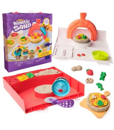 Was Kaufmannsladenspiel für die Kleinen ist, das bietet das Kinetic Sand Squish Pizza Set für Vor- und Grundschulkinder. Hier kann nach Herzenslust geknetet, geschichtet, geformt, belegt und serviert werden. Alles begleitet von Verkaufsgesprächen mit Freunden, Geschwistern oder Eltern. Was soll auf die Pizza drauf? Mit Käse oder ohne? Und den Wow-Effekt, wenn der Pizzateig aufgeht, gibt es gratis dazu. Mit kleinen Förmchen im Ofenbogen können die Pizzen sogar mit Gummibärchen, Mini-Brezeln oder Erdbeeren belegt werden. Etwas ungewöhnlich, aber auf jeden Fall hübsch anzusehen. Wer mehr Sandnachschub benötigt, findet ihn in 907 g Beuteln in den Farben Blau, Grün, Lila, Pink, Rot und Natur, Gelb bekommt man im 227 g Pack, ebenso wie Rot und Blau (alles separat erhältlich). Beim Spielen mit Kinetic Sand werden Feinmotorik, Augen-Hand-Koordination, Tastsinn und Kreativität gefördert, alles ganz spielerisch. Da Kinetic Sand nicht austrocknet, ist er jederzeit spielbereit. Seine optimale Konsistenz besitzt er bei ca. 60% Luftfeuchtigkeit. Ist die Raumluft zu trocken, einfach ein paar Tropfen dazugeben oder Wasser darüber sprühen und unterkneten. Schon ist er wieder bereit, zur nächsen Pizza zu werden. ...