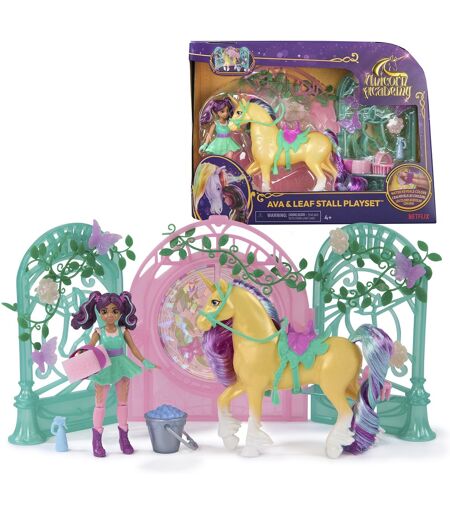 Spin Master Unicorn Academy - Ava & Einhorn Leaf Stall Spielset mit Farbwechseleffekt, Spielfigur