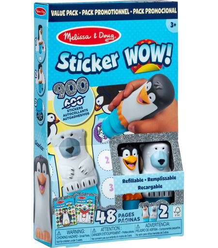 Mit Sticker WOW! von Spin Master Melissa & Doug kommen viele tolle Aufkleber zu verschiedenen Themen mit einem auch für Kinder einfach zu handhabenden Werkzeug. Dabei ist jeder Aufkleber eine Überraschung, denn es gibt eine riesige Menge an verschiedenen Designs. Dieses Set enthält gleich zwei Aufkleberstempel - einen im Eisbären- und einen im Pinguindesign. Außerdem enthält dieses Set insgesamt 900 Sticker zum Thema Winter und zwei jeweils 24-seitige Blöcke, deren Seiten mit Stickern gefüllt werden können. ...
