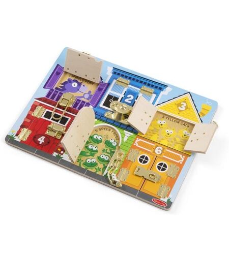Melissa & Doug Spielbrett mit Schlössern – Spielerisches Lernen für kleine Entdecker Das Melissa & Doug Spielbrett mit Schlössern ist ein Lernspielzeug, das speziell entwickelt wurde, um die Geschicklichkeit und Feinmotorik von Kindern zu fördern. Wie funktioniert es? Das Brett bietet Kindern 6 verschiedene Verriegelungen, die durch Einhaken, Aufschnappen, Klicken und Schieben geöffnet werden können. Hinter jedem Fenster und jeder Tür verstecken sich farbenfrohe Tiere in genau der Anzahl, die außen aufgemalt ist, was Zählen und Mengenverständnis fördert. Das glatt geschliffene, robuste Holzbrett bietet Kindern ab 3 Jahren ein sicheres und langlebiges Spielvergnügen, bei dem sie sowohl ihre motorischen als auch kognitiven Fähigkeiten trainieren. Details: Inhalt: Motorikbrett aus Holz mit 6 verschiedenen Verriegelungen Material: Glatt geschliffenes Holzbrett für langlebigen Spielspaß und Sicherheit Entdeckerfreude: Überraschuns-Tiere hinter Türen und Fenstern Lernen und Spielen: Fördert Fingerfertigkeit und spielerisches Lernen von Zahlen und Farben Altersgerecht: Geeignet für Kinder ab 3 Jahren Kundenfragen: Frage: Ist das Brett sicher für kleine Kinderhände? Antwort: Ja, das Melissa & Doug Motorikbrett ist aus glatt geschliffenem Holz und enthält keine scharfen Kanten, was es für kleine Kinderhände sicher macht. Frage: Kann mein Kind alleine damit spielen, oder benötigt es Hilfe? Antwort: Das Brett ist so konzipiert, dass Kinder ab 3 Jahren selbstständig damit spielen können, aber elterliche Anleitung kann bei den ersten Schritten hilfreich sein. Das Melissa & Doug Motorikbrett aus Holz ist ein wertvolles Lernspielzeug, das Kindern spielerisch hilft, wichtige motorische und kognitive Fähigkeiten zu entwickeln. Mit seinem robusten Design, den bunten Überraschungen und lehrreichen Aktivitäten ist es ein lehrreiches und unterhaltsames Geschenk für Kinder. ...