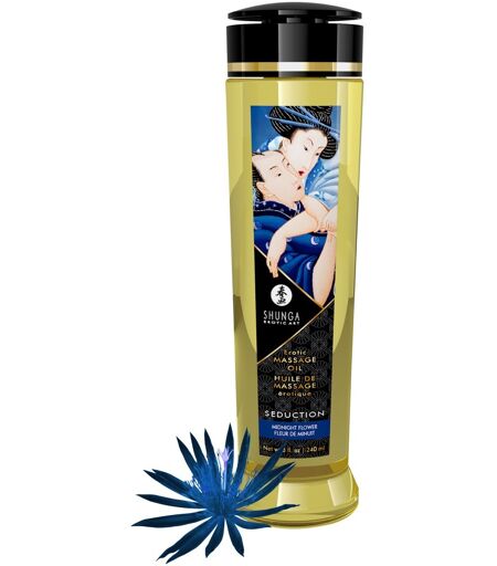 Luxuriöses Erotic Massage Oil Seduction von Shunga mit sinnlich elegantem Midnight Flower-Duft, der bei der Solo- oder Partnermassage die Sinne weckt und Lust auf mehr macht! Das vegane Massageöl besteht aus 100% kaltgepressten natürlichen Ölen und enthält hautpflegendes Vitamin E. Es gleitet sanft und leicht über die Haut, ohne ein unangenehm fettiges Gefühl und Rückstände zu hinterlassen. Im Gegenteil, es pflegt die Haut seidig weich! Dazu ist sehr ergiebig für viele sinnliche und leidenschaftliche Ganzkörpermassagen. 240 ml. ...