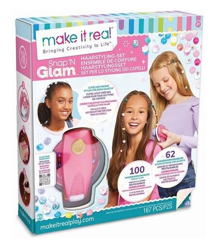 Cooles Haarstyling mit bunten Clips. Inhalt: 1 Styler, 1 Kassette, 100 wiederverwendbare Perlen-Clips, 30 Schmuckstein-Akzent-Clips, 1 Schmucksteinbogen, 30 Blumen-Akzente, 2 Schmetterlings-Akzente, 1 Messwerkzeug, 1 Anleitung. ...