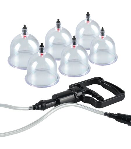 Das Schröpfen ist eine Praxis aus der chinesischen Heilmedizin und wird vor allem dazu eingesetzt, leichte Verspannungen und Muskelverhärtungen mithilfe eines Vakuums zu lösen. An bestimmten Hotspots löst dieser Unterdruck auch ein besonders erregendes Gefühl aus, da es die Nervenenden an diesem Bereich des Körpers sensibilisiert – da es die Durchblutung verbessert, werden Berührungen dort intensiver wahrgenommen. Die simple Handhabung dieses Sets macht diese Praxis auch für Anfänger zu einem aufregenden Genuss – einfach die Cups aufsetzen und mit der Scherengriff-Pumpe einen Unterdruck aufbauen. Cups 2 x groß 5,7 cm, 2 x medium 5 cm, 2 x klein 4 cm. ABS. ...