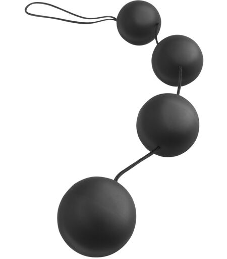 4er-Strang Liebeskugeln mit Soft Touch Textur und elastischem Rückholbändchen. Die Kugeln eignen sich für ein effizientes Beckenbodentraining: In ihrem Inneren rotieren Kugelgewichte und lösen bei jeder Bewegung Schwingungen aus, die zu kräftigenden Muskelkontraktionen führen. Mit ihrem Gewicht von 167,8 g sind die Liebeskugeln ideal für bereits geübte Expertinnen. Zudem können sie auch für anale Spielereien genutzt werden. Gesamtlänge 40 cm (inklusive Rückholband), Kugel Ø 3,2 cm. Gewicht 167,8 g. ABS. ...