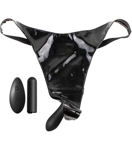 Dehnbarer String 10-Function Remote Fantasy Panty von Fetish Fantasy Series in Lackoptik, in den beiliegendes Vibrobullet in den im Schritt fest platzierten, kleinen Dildo eingesetzt werden kann. Die 10 flüsterleisen Vibrationsmodi verwöhnen jederzeit und überall – völlig diskret, niemand bemerkt das kleine Lustgeheimnis! Auch in der Badewanne oder unter der Dusche anwendbar, denn das Vibrobullet ist wasserdicht. Die Vibrationsmodi sind mit der kabellosen Fernbedienung bequem steuerbar – auch vom Partner. Wiederaufladbar - inkl. USB-Ladekabel. Polyamid, Polychlorid (Vinyl), Chloroprene Kautschuk, Elasthan. ...