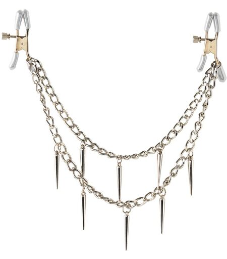 Fetish Fantasy Series Nippelklammern „Rock Hard Nipple Clamps“, mit stylischer Metallkette voller Spikes, 31 cm
