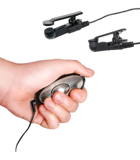 Die Nippelklammern liegen angenehm an den Nippeln auf und stimulieren diese bereits mit einer Portion Druck. Dies kann noch verstärkt werden mit dem beiliegenden Elektro-Bedienteil, welches leicht zu steuern ist und elektrische Impulse direkt an die Nippelklammern weitergibt. Die Bedienung kann aber auch allein als schockierenden Massager benutzt werden. Der perfekte Einstieg in die Welt des Elektro-Sex und ein Muss für Experten! Inklusive Batterie: 1 x CR2032. ABS, Metall. ...