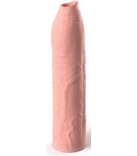Die Penissleeve Uncut Silicone Penis Enhancer von Fantasy X-Tensions Elite bringt den Penis schnell und einfach in Topform für ausfüllende Lustmomente. Die eng sitzende, erektionsunterstützende Sleeve wird einfach über das Glied gestreift. Die Sleeve im Uncut-Look ist oben offen, damit die sensible Eichel freiliegt. Für perfekte Passform kann die Sleeve gegebenenfalls mit der Schere unten gekürzt werden. Mit ausgeprägter Äderung und aus seidig softem Silikon gefertigt, schmiegt sich die rundum elastische Sleeve jedem Penis hautnah an. Dank des prächtigen Außendurchmessers wird der Penis im Umfang um 66% vergrößert. Für eine besonders gründliche hygienische Reinigung lässt sich die Sleeve in heißem Wasser 3 Minuten lang auskochen. Sleeve 17,8 cm lang, Einführtiefe 17,4 cm, Innen-Ø 3,1 cm, Außen-Ø 4,1 cm, dehnbar. Silikon. ...