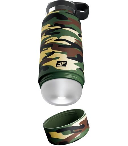 Das neutrale Trinkflaschen-Design im Tarnmuster der Fap Flask Happy Camper von PDX Plus+ macht diesen Masturbator zum idealen Begleiter für unterwegs. Ob beim Outdoor-Abenteuer, beim Sport oder privaten Manöver – die Fap Flask ist und bleibt ein diskretes privates Geheimnis! Unter dem Schraubdeckel am Boden der Fap Flask verbirgt sich eine weiche transparente Sleeve in neutraler Optik. Innen mit raffinierter Stimulationsstruktur, die den Penis beim Handjob rundherum intensiv massiert. Am oberen Deckel mit einfach zu bedienendem Flip-Top-Saugventil für saugende Feelings wie beim besten Blowjob. Die Daumenschlaufe sorgt dabei für festen sicheren Griff beim Vergnügen. Die weiche dehnbare Innensleeve aus hautähnlichem Fanta Flesh Material nimmt die Körpertemperatur schnell an und gewährleistet so ein absolut lebensechtes Erlebnis. Die Sleeve ist zur leichten Reinigung aus dem Gehäuse herausnehmbar. Gesamtlänge 23,8 cm, Einführtiefe 17,8 cm, Innen-Ø eng und dehnbar, Außen-Ø 8,3 cm. Gewicht 600 g. ABS, TPE, PP, Silikon. ...