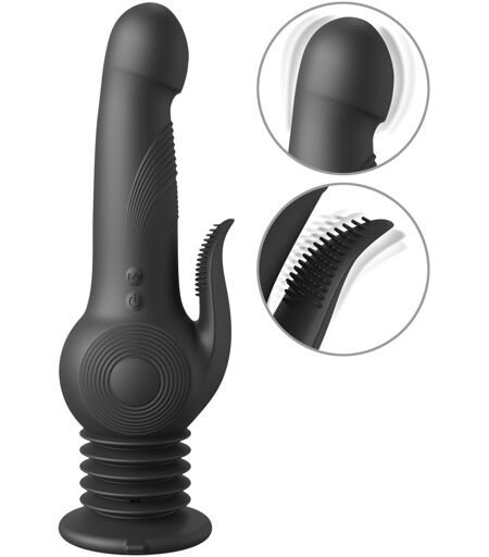 Der Pogo Thruster von Fetish Fantasy Series bietet mit seinem leistungsstarken Gyromotor eine besonders intensive Stimulations-Kombi aus kraftvollen Pulsationen und Rotationen. Diese Pogo-Action wird durch den federnden Saugfuß verstärkt und rhythmisch unterstützt. Zusätzliche 2 Motoren sorgen außerdem für starke Vibrationen in der prallen Spitze und in der kleinen soften Noppenzunge. Der Pogo-tanzende Rillenschaft ist in 3 Geschwindigkeiten und die Vibrationen sind in jeweils 10 Modi steuerbar. Ganz bequem per Knopfdruck. Mit seinem federnden Saugfuß haftet der Pogo Thruster fest und sicher auf jeder glatten Oberfläche und ermöglicht so freihändiges Reit-Vergnügen. Aus seidig softem Silikon gefertigt, lässt sich der Action-Vibrator leicht einführen und passt sich Körper und Spiel optimal an. Wiederaufladbar – USB-Ladekabel liegt bei. Gesamtlänge 23,5 cm, 6,7 cm breit, Einführlänge 13,4 cm, Ø 3,9 cm. Gewicht 440 g. Silikon, ABS, Metall. ...