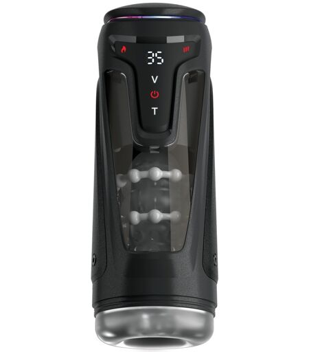 Masturbator Moto-Bator Pro von PDX Elite im handlichen diskreten Gehäuse. Mit kraftvoller Vibration und intensiver Stoßmassage von 3 Perlenkränzen, um rundherum den Penis verwöhnen. Dazu auf Knopfdruck die Wärmefunktion (2 Modi), um den Masturbator schnell auf die richtige Körper- und Betriebstemperatur zu bringen. Vibration und Stoßmassage sind in jeweils 5 Modi bequem per Knopfdruck am LED-beleuchteten Bedienfeld getrennt steuerbar. In der ultraweichen Sleeve wird der Penis zusätzlich von Noppen intensiv massiert. Die Sleeve in neutraler Optik ist zur einfachen Reinigung herausnehmbar. Wiederaufladbar – inklusive USB-C-Ladekabel. Gesamtlänge 26,5 cm, Einführtiefe 14 cm, Außen-Ø 8,9 cm, Innen-Ø eng und dehnbar. Gewicht 790 g. ABS, TPE. ...