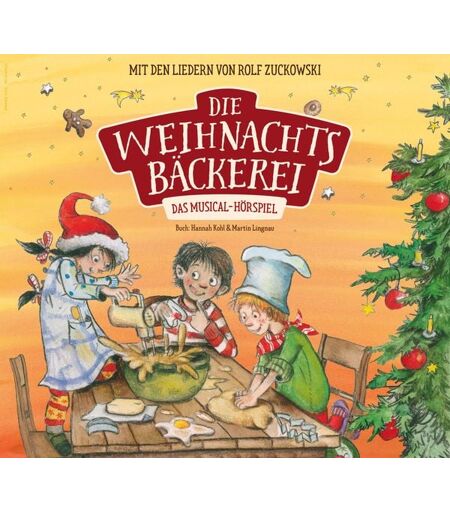 "Empfohlen für Hörer ab 5 Jahren. DIE WEIHNACHTSBÄCKEREI - Das Musical-Hörspiel mit den Liedern von Rolf Zuckowski! Dieses schwungvolle musikalische Hörspiel präsentiert die heitere Geschichte des Musicals „DIE WEIHNACHTSBÄCKEREI“ von Hannah Kohl und Martin Lingnau - mit vielen Liedern von Rolf Zuckowski in wundervollen Orchesterarrangements! Innerhalb kürzester Zeit hat sich diese Musical-Produktion des Hamburger Schmidt's Tivoli für viele Familien in Deutschland zur festen Weihnachtstradition entwickelt. Erzählt wird eine turbulente Familien-Geschichte zur Vorweihnachtszeit, eingebettet in 20 der schönsten Winter- und Weihnachtslieder von Rolf Zuckowski – natürlich neben Klassikern wie ""Guten Tag, ich bin der Nikolaus"", ""Lieber guter Weihnachtsmann"", ""Winterkinder"", ""Es schneit"" oder ""Dezemberträume"" auch das bekannte Titellied. In 2024 wird das Musical in Hamburg, Berlin, Bremen und Duisburg aufgeführt." ...
