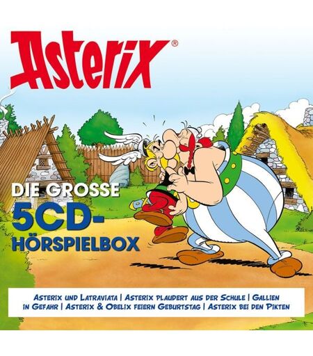 """Ganz Gallien ist von den Römern besetzt … Ganz Gallien? Nein! Ein von unbeugsamen Galliern bevölkertes Dorf hört nicht auf, den Römern Widerstand zu leisten."" Die 40 Comic-Abenteuer von Asterix, Obelix, Idefix und ihren Freunden, die von René Goscinny und Albert Uderzo vor über 60 Jahren erschaffen wurden, gibt es nun komplett in kompakten und günstigen 5CD-Hörspielboxen. Nach der letztjährigen Veröffentlichung der ersten Box mit den Episoden 1-5, folgen nun die restlichen 35 in den Boxen 2-8. Empfohlen ab 5 Jahren" ...
