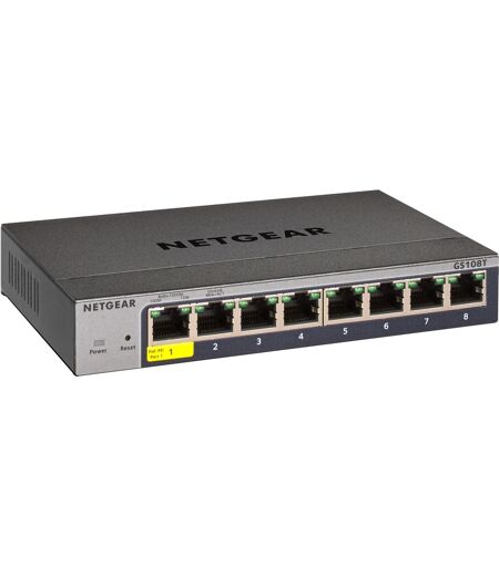 Der Netgear GS108T v3 ist ein High-Performance Gigabit-Smart-Switch. Er ermöglicht eine einfache Aufrüstung der bestehenden Netzwerke auf Übertragungsgeschwindigkeiten von 1000 MBit/s über Cat.5-Kabel. Acht 1000-BASE-T-Vollduplex-Ports erhöhen drastisch die Performance des Netzwerkes. Der GS108T v3 kann sowohl in herkömmlichen Fast-Ethernet- als auch in Gigabit-Netzen eingesetzt werden. Er eignet sich besonders als Desktopgerät, da er lüfterlos ist. ...