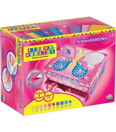 Sticky Mosaics - Das Sortiment für kreative Spielerlebnisse. Mit den selbstklebenden Moosgummi- und Glitzerplättchen in unterschiedlichen Farben und Formen ,können Kinder in wenigen Stunden fantasievolle Mosaikbilder, Schmuck oder Accessoires nach Zahlen oder auch frei gestalten. , Inhalt: 1 Schmuckkästchen ,1000+ selbstklebende Moosgummi- und Glitzerplättchen in unterschiedlichen Farben und Formen ,Alter: 5+ ...