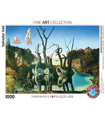 EuroGraphics Schwäne spiegeln Elefanten von Salvador Dalà 1000-Teile Puzzle Verpackungsabmessungen 35 x 25 x 6 cm. Abmessungen des zusammengebauten Puzzles 48 x 68 cm. Als einer der Hauptvertreter des Surrealismus zählt Dalà zu den bekanntesten Malern des 20. Jahrhunderts. Um das Jahr 1929 hatte er seinen persönlichen Stil und sein Genre gefunden, die Welt des Unbewussten, die in Träumen erscheint. ...