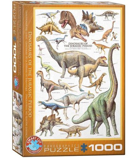 EuroGraphics Dinosaurier des Jura Period 1000-Teile Puzzle. Verpackungsabmessungen 35 x 25 x 6 cm. Abmessungen des zusammengebauten Puzzles 48 x 68 cm. Über 20 dieser faszinierenden Echsen aus dem Jura sind hier sehr detailgetreu illustriert. Speziell entwickelte Pappe mit wiederstandsfähiger Leinenstruktur für einen noch besseren Zusammenhalt der Teile. ...