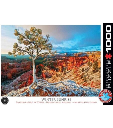 EuroGraphics Grand Canyon Winter Sonnenaufgang 1000-Teile Puzzle. Verpackungsabmessungen 35 x 25 x 6 cm. Abmessungen des zusammengebauten Puzzles 48 x 68 cm. Über den Tiefen des Grand Canyon scheint eine alte Zeder hochhinausragend den Elementen, Erosion und Kälte zu trotzen um den neuen Tag zu begrüßen. Speziell entwickelte Pappe mit wiederstandsfähiger Leinenstruktur für einen noch besseren Zusammenhalt der Teile. ...