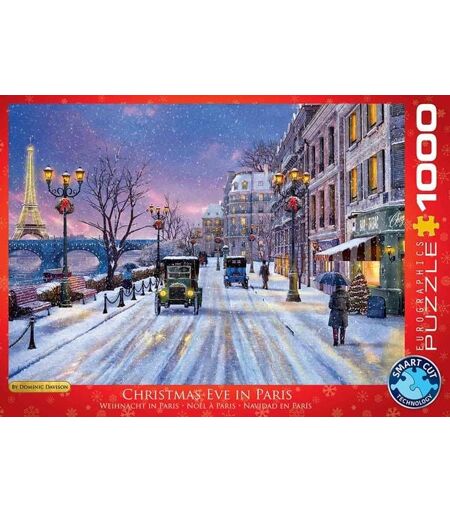 EuroGraphics Weihnachtsabend in Paris von Dominic Davison 1000-Teile Puzzle. Verpackungsabmessungen 35 x 25 x 6 cm. Abmessungen des zusammengebauten Puzzles 48 x 68 cm. Geniesen Sie die Weihnachtsvorfreude in dieser Festtagsreise in die Stadt der Lichter. So mancher sieht nun sogar den Eiffelturm als Weihnachtsschmuck. Speziell entwickelte Pappe mit wiederstandsfähiger Leinenstruktur für einen noch besseren Zusammenhalt der Teile. ...