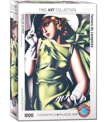 EuroGraphics Young Girl in Green von Tamara de Lempicka 1000-teiliges Puzzle. Kartongröße: 35 x 25 x 5,8 cm. Fertige Puzzle Größe: 48 x 68 cm. Dieses Gemälde ist vielleicht das berühmteste Gemälde von Tamara De Lempicka und war während ihrer gesamten Karriere eine Ikone ihres künstlerischen Stils und ihrer Arbeit. Starke hochwertige Puzzleteile. Hergestellt aus recyceltem Karton und bedruckt mit Tinte auf pflanzlicher Basis. Dieses hochwertige Puzzle wird alle gleichzeitig begeistern und erziehen. ...
