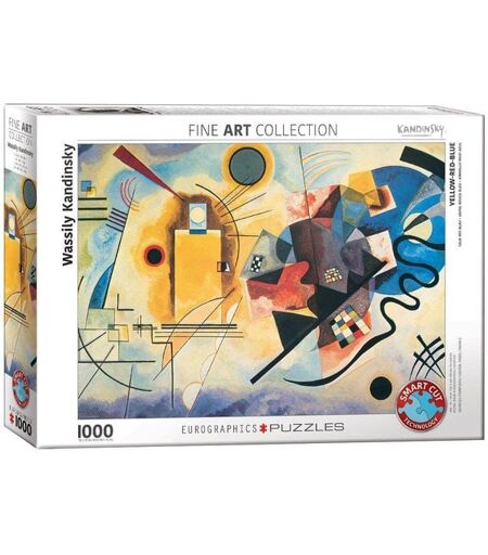 EuroGraphics Gelb Rot Blau von Wassily Kandinsky 1000-Teile Puzzle. Verpackungsabmessungen 35 x 25 x 6 cm. Abmessungen des zusammengebauten Puzzles 48 x 68 cm. Kandinsky war ein Künstler des Expressionismus und einer der Wegbereiter der abstrakten Kunst. Er lebte in Frankreich und Deutschland und war Mitbegrüder der Künstlervereinigung Der Blaue Reiter. Speziell entwickelte Pappe mit wiederstandsfähiger Leinenstruktur für einen noch besseren Zusammenhalt der Teile. ...