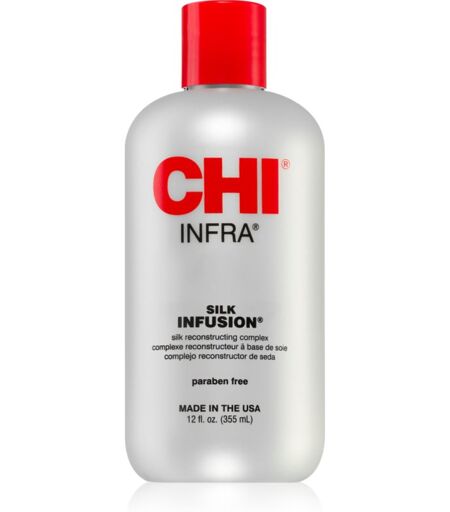 CHI Silk Infusion, 355 ml, Haarcremes und -gels für Damen, Für sofortige Zufuhr an Feuchtigkeit und Nährstoffen sorgt die Leave-in Pflege CHI Silk Infusion . Das Produkt versorgt das Haar mit allem, was es direkt nach der Haarwäsche benötigt, ohne dass Sie im Bad unnötig viel Zeit verbringen müssen. Das Haar wird geschmeidig und erhält seinen natürlichen Glanz und die Integrität seiner Struktur zurück. Die Formel unterstützt die Regeneration und trägt dazu bei, dass sich das Haar leichter kämmen lässt. Und das alles einfach, schnell und ohne die Notwendigkeit, das Produkt auszuspülen. Einfach auftragen, einarbeiten, bzw. durchkämmen und schon wird das Haar von innen und außen wieder vor Kraft strotzen. Probieren Sie diese Leave-in Pflege aus und entdecken Sie eine einfache und schnelle Möglichkeit der Haar-Regeneration mit vielen weiteren Vorteilen. Eigenschaften: verbessert die Haarstruktur verleiht dem Haar anziehenden Glanz hat eine regenerative Wirkung zähmt widerspenstiges Haar Anwendung: Tragen Sie es auf das handtuchtrockene Haar auf. Nicht ausspülen. ...