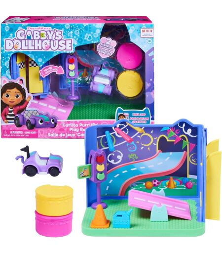 Mit den Spielzeugen aus der Reihe Gabby''s Dollhouse tauchen Kinder in die Welt der beliebten Animationsserie ein. Mit dem detailgetreuen Deluxe Raum Purr-ific Play Room können die magischen Abenteuer der Serie authentisch nachgespielt werden. Dieser Deluxe Raum steckt voller liebevoller Details und Überraschungen. Durch die Zimmertür mit Flaggen-Design kommt man in den Raum, der neben dem authentischen Carlita Spielzeugauto eine Wippenrampe und eine Ampel beinhaltet. Außerdem kommt jedes Deluxe Raum-Set mit zwei Überraschungsboxen. Genau wie Gabby zu Beginn jeder Folge können die Puppenhaus-Lieferungen geöffnet werden, um die geheimnisvollen Zubehörteile des Sets zu entdecken: Einen Spielzeugverkehrskegel und einen Benzinkanister. Die Deluxe Räume sind sind alle mit Gabby''s Purrfect Dollhouse Puppenhaus (separat erhältlich) kompatibel: Sie können einfach in die Seite des Spielzeughauses eingeschoben werden. ...