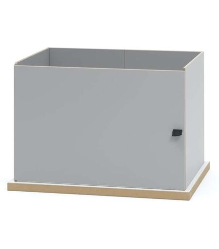Das Tojo Stap Regalsystem des Designerteams eigenwert ist ein flexibles System, das gänzlich ohne Werkzeug zum einfachen Regal mit Türen oder zum Sideboard aufeinander gestapelt werden kann. Das Tojo Stap Regalsystem besteht aus beschichtetem MDF. Die flachen Elemente, die Seitenwände und Tür bilden, werden einfach in die Nut des Fachbodens gesteckt, mit den Anbaumodulen wird ebenso verfahren. Die einzelnen Elemente des Tojo Stap Regalsystem können zum hohen Schrank oder zur Kommode kombiniert werden. Erst granz zum Schluss wird der Deckel des Grundmoduls oben auf gesetzt. Das elegante Grau bildet mit der Holzkante eine harmonische Frontseite. Das Tojo Stap Regalsystem ist ein modulares Boxensystem, das auch in die kleinste Wohnung passt und durch die leichten Materialien immer wieder flexibel neu positioniert werden kann. ...