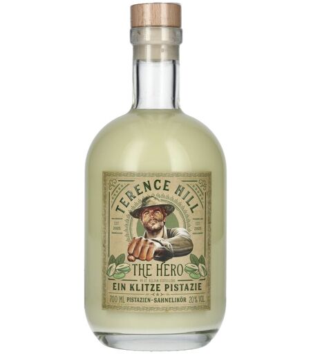 Der Terence Hill THE HERO Ein Klitze Pistazie ist ein cremiger Sahnelikör mit feinem Pistaziengeschmack – inspiriert vom legendären Kinohelden Terence Hill. Diese Spezialität verbindet italienisches Lebensgefühl, charmante Nostalgie und süßen Genuss in einer einzigartigen Komposition. Hergestellt mit hochwertiger Sahne und einem harmonisch abgestimmten Pistazienaroma, bietet dieser Likör eine milde, vollmundige Genusswelt mit Wiedererkennungswert. Der Alkoholgehalt von 20 % Vol. sorgt für ein ausgewogenes Verhältnis zwischen Cremigkeit und feiner Spirituosenstärke. Die Terence-Hill-Likörlinie wurde für Fans des Kultstars entwickelt, besticht aber nicht nur durch ihre cineastische Idee, sondern auch durch Qualität und Geschmack. Die cremige Textur und das authentische Pistazienaroma machen diesen Sahnelikör zu einer beliebten Wahl für Genießer süßer Spezialitäten. Ob als Highlight für Themenabende, als Dessertalternative oder als originelles Geschenk – Ein Klitze Pistazie ist mehr als nur ein Sahnelikör: Er ist ein Stück Genusskino im Glas. Farbe: Sanftes Pistaziengrün. Nase: Süß und nussig mit intensiven Noten gerösteter Pistazien und feiner Vanille. Geschmack: Cremig, süß und ausgewogen mit deutlichem Pistazienaroma, feinem Sahnecharakter und leichter Marzipan-Note. Abgang: Weich, mild und langanhaltend mit süß-nussigem Finale. Perfekt pur oder auf Eis als Dessertdrink, aber auch eine hervorragende Zutat für kreative Cocktails oder süße Longdrinks. In der Küche macht sich der Likör ausgezeichnet in Eiscreme, Tiramisu oder als aromatische Ergänzung zu Kuchenfüllungen und Pralinen. Auch in einem „Pistachio White Russian“ oder einem „Creamy Espresso Shot“ setzt er geschmacklich besondere Akzente. Ein Genuss für Pistazienliebhaber und alle, die auf der Suche nach einer süßen, cineastischen Überraschung sind. ...
