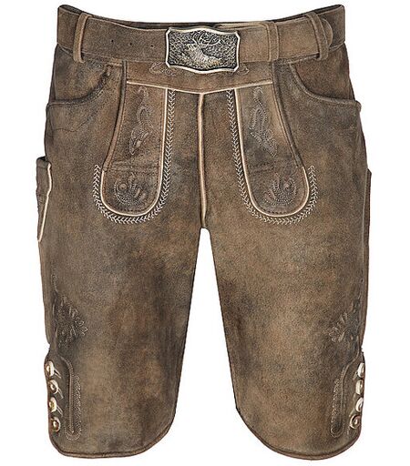 Herren Lederhose Hochwertiges Ziegenleder in moderner Optik Feine Stickereien Verstellbare Bundschnürung Traditionelle Hornknöpfe Perfekt kombinierbar Farbbezeichnung: Nussbraun Material: Leder ...