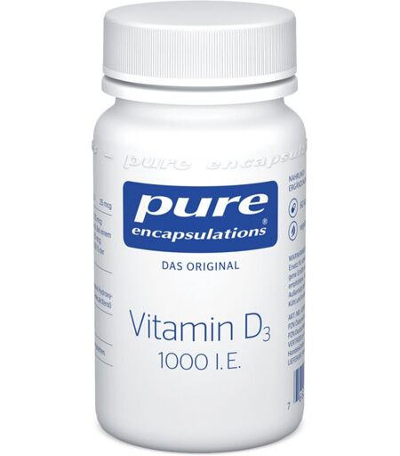 Wirkstoffe / Inhaltsstoffe / ZutatenZutaten von Pure Encapsulations Vitamin D3 1000 I.e. Kapseln: Füllstoff: mikrokristalline Cellulose, Kapsel: Hydroxypropylmethylcellulose, Vitamin D3 (Cholecalciferol)