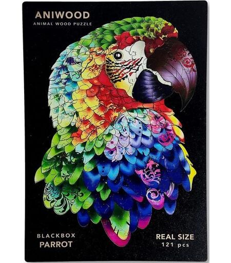BestSaller Aniwood J2314M - Animal Wood Puzzle, Blackbox Parrot M, Papagei, Holz-Puzzle, 121 Teile
