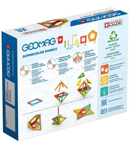 Geomag-Magnetspielzeuge unterstützen die gesunde Entwicklung von Kindern und den Erhalt einer lebenswerten Umwelt, in der unsere Kinder aufwachsen. Das Spielen mit Geomag verbessert Feinmotorik, Hand-Augen-Koordination und Konzentration, Auch Lese-, Schreib- und Rechenfertigkeiten von Kindern werden gefördert. Kinder lernen gesammelte Erfahrungen im wirklichen Leben anzuwenden. , Geomag – Made in Switzerland. Endlose 3D-Strukturen bauen und dabei spielerisch Kreativität und Fantasie entfesseln Bauteile: Magnetischen Stäbe, Stahlkugeln und Tafeln in verschiedenen Formen bilden das magnetische Bausystem, dass Geomag in der ganzen Welt berühmt gemacht hat. Das Classic-Sortiment besteht aus verschiedenen Produktlinien (Color, Panels, Glitter und Glow), mit denen man große und stabile Strukturen bauen kann Leuchtende Farben - starke Magnete Praktische Aufbewahrungsbox im Taschenformat für die Stäbe und Kugeln Top-Qualität aus 100 % recyceltem Kunststoff Alter: 3 –99 Inhalt: 12 Stäbe, 12 Kugeln, 8 Dreieck-Panels, 2 quadratische ,Panels, 1 Fünfeck-Panel ...