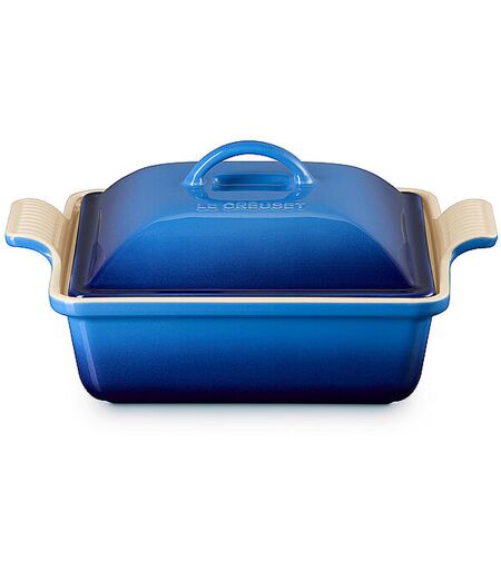 LE CREUSET Auflaufform quadratisch mit Deckel 23cm/2,4l TRADITION Azure blau B