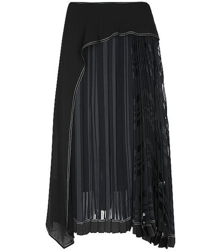 Modischer Damen Midirock aus feinem Chiffon Elastischer Bund Plissierte Falten Asymmetrischer Einsatz Steppnähte in Kontrastfarben Unifarben Länge: Ca. 76 cm Farbbezeichnung: Black Material: 100% Polyester ...