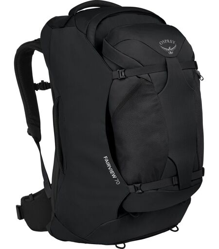 Der Fairview 70 ist ein leichter und vielseitiger Reiserucksack mit reichlich Stauraum. Dank seines hochwertigen und belastbaren Rückensystems bietet er hohen Tragekomfort auch bei größeren Lasten. Der Fairview hat gepolsterte Tragegriffen oben und an den Seiten und lässt sich damit wie eine Reisetasche schnell und einfach vom Gepäckband nehmen. Das Tragesystem lässt sich komplett verstauen, so dass der Fairview auch als Reisetasche einfach zu handhaben ist. Und dank des Kompressionsriemensystems bleibt auch bei Erschütterungen alles zuverlässig an seinem Platz. Dieser Rucksack wurde aus Materialien hergestellt, die aus Recycling gewonnen wurden. Für noch mehr Flexibilität ist ein FairView Daypack mit 15 Litern Volumen im Lieferumfang, das zum Transport am Fairview 70 befestigt und bei Bedarf abgenommen werden kann. ...
