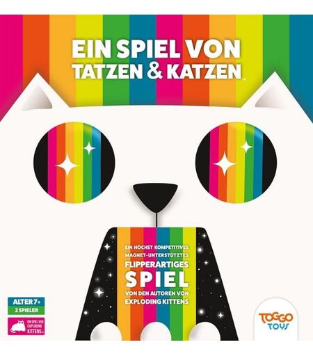"""Ein Spiel von Tatzen & Katzen ist ein Spiel für zwei Personen und wird über mehrere Runden gespielt. Dein Gegenspieler und du steht euch vor einem Spielfeld gegenüber. Die Mittellinie des Spielfelds wird von einem Katzenkopf bewacht. Schnappt euch schnell die Pfotenkatapulte und dann ran an die Bälle! Derjenige, der es als Erster schafft, alle gelben Bälle durch das Maul der Katze auf die Seite seines Gegenspielers zu schippen, erzielt einen Punkt und gewinnt die Runde. Ausserdem erzielt ihr Punkte, wenn ihr den schwarzen Nasenball in der Mitte oder die drei weissen Zahnbälle im Maul der Katze trefft und diese im gegnerischen Feld landen. Ein Ball landet ausserhalb des Spielfelds im Aus? Kein Problem! Ruft einfach laut Miause, um das Spiel zu unterbrechen. Wer als Erster fünf Punkte erzielt, gewinnt das Spiel von Tatzen & Katzen.""" ...