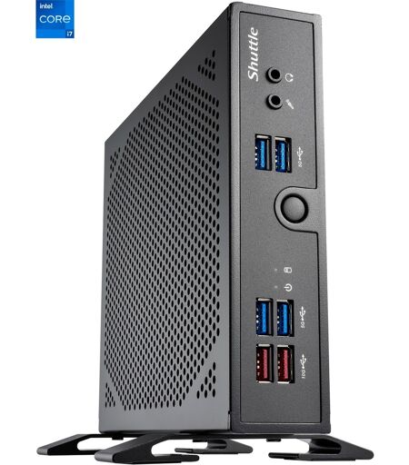 Bei derm Shuttle XPC slim DS50U7 handelt es sich um einen schlanken, lüfterlosen Barebone-PCs in einem robusten Metallgehäuse mit universellen Anschlussmöglichkeiten. Der aufgelötete Intel® Core™ i7-1355U Prozessor bietet genügend Performance für die Wiedergabe von 2160p/60-Videos in 4K-Auflösung. Zwei digitale Anschlüsse für UHD-Displays und ein traditioneller VGA-Port sind vorhanden. Komponenten lassen sich dabei einfach installieren: zwei DDR5-Speichermodule, ein 2,5"-Laufwerk und zwei M.2-2280 SSD-Karten finden hinter dem praktischen Gehäusedeckel Platz. In den zweiten M.2-Steckplatz kann optional mit Hilfe des Adapter-Kits WWN04 auch ein 4G/5G-Modul integriert werden. Dank komplett passiver Kühlung ist das System praktisch wartungsfrei, für den 24/7-Dauerbetrieb geeignet und außerdem sehr sparsam. Es ist ideal einsetzbar für professionelle Anwendungen wie Digital-Signage, POS, Steuerung, Office oder als Media-PC. ...
