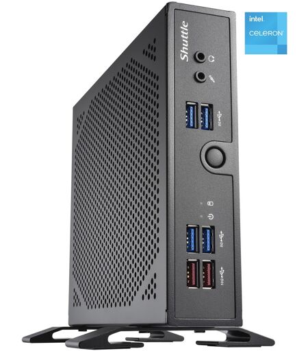 Bei derm Shuttle XPC slim DS50U handelt es sich um einen schlanken, lüfterlosen Barebone-PCs in einem robusten Metallgehäuse mit universellen Anschlussmöglichkeiten. Der aufgelötete Intel® Celeron® 7305 Prozessor bietet genügend Performance für die Wiedergabe von 2160p/60-Videos in 4K-Auflösung. Zwei digitale Anschlüsse für UHD-Displays und ein traditioneller VGA-Port sind vorhanden. Komponenten lassen sich dabei einfach installieren: zwei DDR5-Speichermodule, ein 2,5"-Laufwerk und zwei M.2-2280 SSD-Karten finden hinter dem praktischen Gehäusedeckel Platz. In den zweiten M.2-Steckplatz kann optional mit Hilfe des Adapter-Kits WWN04 auch ein 4G/5G-Modul integriert werden. Dank komplett passiver Kühlung ist das System praktisch wartungsfrei, für den 24/7-Dauerbetrieb geeignet und außerdem sehr sparsam. Es ist ideal einsetzbar für professionelle Anwendungen wie Digital-Signage, POS, Steuerung, Office oder als Media-PC. ...
