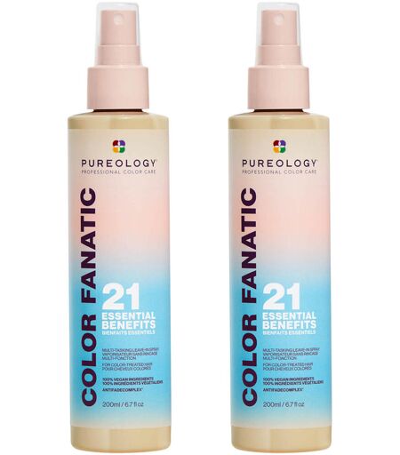 Mit dem Colour Fanatic Spray von Pureology, einem vielseitigen Spray mit 28 essenziellen Vorteilen, bereitest du farbbehandeltes Haar vor, schützt und perfektionierst es.Sein einzigartiger AntiFadeComplex® mit antioxidativem Fenchelextrakt schützt das Haar vor umweltbedingten Aggressoren und Hitzeschäden durch Stylinggeräte. Die spezielle Formel mit pflanzenbasiertem Keravis™ stärkt das Haar. Eine Mischung aus natürlichen Ölen wie Kokos- und Olivenöl glättet und pflegt das Haar, ohne es zu beschweren. Als Spülung ohne Ausspülen, Spliss-Schutz und Styling-Spray verwenden.Enthält 2 x Pureology Colour Fanatic Spray (200 ml).Frei von Salz, Parabenen, Farbstoffen, feuchtigkeitsentziehendem Alkohol, Mineralöl und DEA (Diethanolamin). ...
