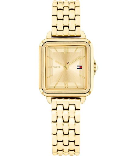 Die Tommy Hilfiger MIA Damenklassikuhr besticht durch ihr edles Design und höchste Verarbeitungsqualität. Das goldene Edelstahlgehäuse mit polierter Oberfläche verleiht der Uhr eine luxuriöse Ausstrahlung, während das eckige Gehäuseform moderne Akzente setzt. Dank des zuverlässigen Quarzwerks kannst Du Dich auf eine präzise Zeitangabe verlassen. Das kratzfeste Mineralglas schützt das analoge Zifferblatt in harmonischem Goldton optimal vor äußeren Einflüssen. Mit einer Wasserdichtigkeit von bis zu 3 Bar ist die Uhr alltagstauglich und widersteht Spritzwasser ohne Probleme. Das goldene Edelstahlarmband schmiegt sich angenehm ans Handgelenk und rundet das elegante Gesamtbild perfekt ab. Die Tommy Hilfiger MIA ist Deine stilvolle Begleiterin für jeden Tag – ob im Büro oder bei besonderen Anlässen. Sichere Dir jetzt dieses hochwertige Schmuckstück und erlebe Zeitmessung auf höchstem Niveau! Geschlecht: Damen Kollektion: MIA Uhrentyp: Klassikuhr Gewicht: 61 g Antrieb: Quarzwerk für präzise Zeitmessung Gehäusematerial: Edelstahl mit IP-Gold-Beschichtung, polierte Oberfläche Gehäusefarbe und Zifferblatt: Elegantes Gold, eckige Form (24 x 22 mm), Höhe: 6,9 mm Ziffernblattanzeige: Analog mit Mineralglas Wasserdichtigkeit: Bis zu 3 Bar (spritzwassergeschützt) Armband: Edelstahl in Gold, Bandbreite 12 mm, goldfarbene Schließe ...