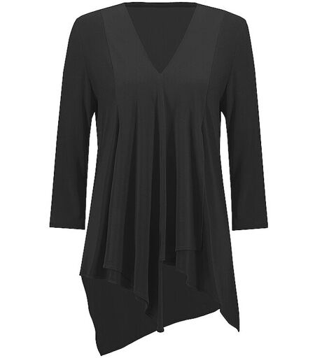 Die fließende, figurumspielende Tunika ist kompromisslos bequem und und dank des 3/4-Arms ein modischer Begleiter rund ums Jahr. V-Ausschnitt, asymmetrischer Saum, perfekt zu vielen Hosentypen zu kombinieren. Damen Tunika aus fließendem Material Tiefer V-Ausschnitt 3/4 Ärmel Asymmetrisch geschnitten Lockere Passform Unifarben Farbbezeichnung: Black Material: 96 % Polyester, 4 % Elasthan ...