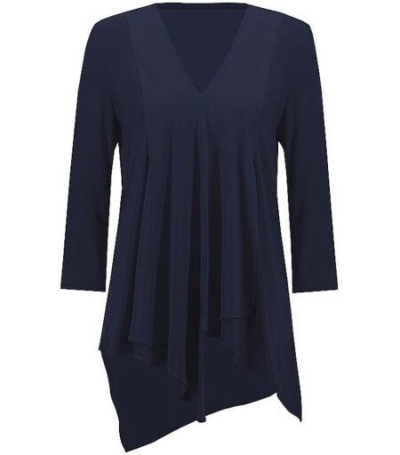 Die fließende, figurumspielende Tunika ist kompromisslos bequem und und dank des 3/4-Arms ein modischer Begleiter rund ums Jahr. V-Ausschnitt, asymmetrischer Saum, perfekt zu vielen Hosentypen zu kombinieren. Damen Tunika aus fließendem Material Tiefer V-Ausschnitt 3/4 Ärmel Asymmetrisch geschnitten Lockere Passform Unifarben Farbbezeichnung: Navy Material: 96 % Polyester, 4 % Elasthan ...
