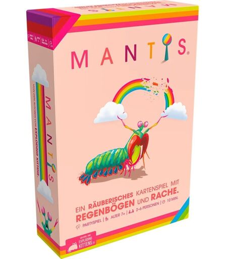 Im knallbunten Kartenspiel "Mantis" gibt es eigentlich nur zwei Regeln: Klauen oder Punkten! Es müssen gleichfarbige Karten gesammelt werden - dabei können Karten von Mitspielern geklaut werden. Doch die können das natürlich auch - wer wird am Ende zehn Karten im Punktestapel haben und damit gewinnen? Dieses Spiel stand auf der Empfehlungsliste zum "Spiel des Jahres 2023" und ist leicht erlernbar. Eine Partie ist in etwa 10 Minuten beendet - aber dadurch nicht weniger nervenaufreibend! ...